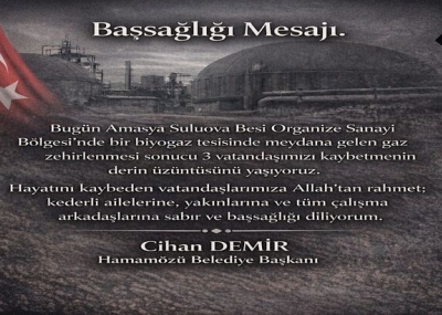 Bugün Amasya Suluova Besi Organize Sanayi Bölgesi’nde bir biyogaz tesisinde meydana gelen gaz zehirlenmesi sonucu 3 vatandaşımızı kaybetmenin derin üzüntüsünü yaşıyoruz.